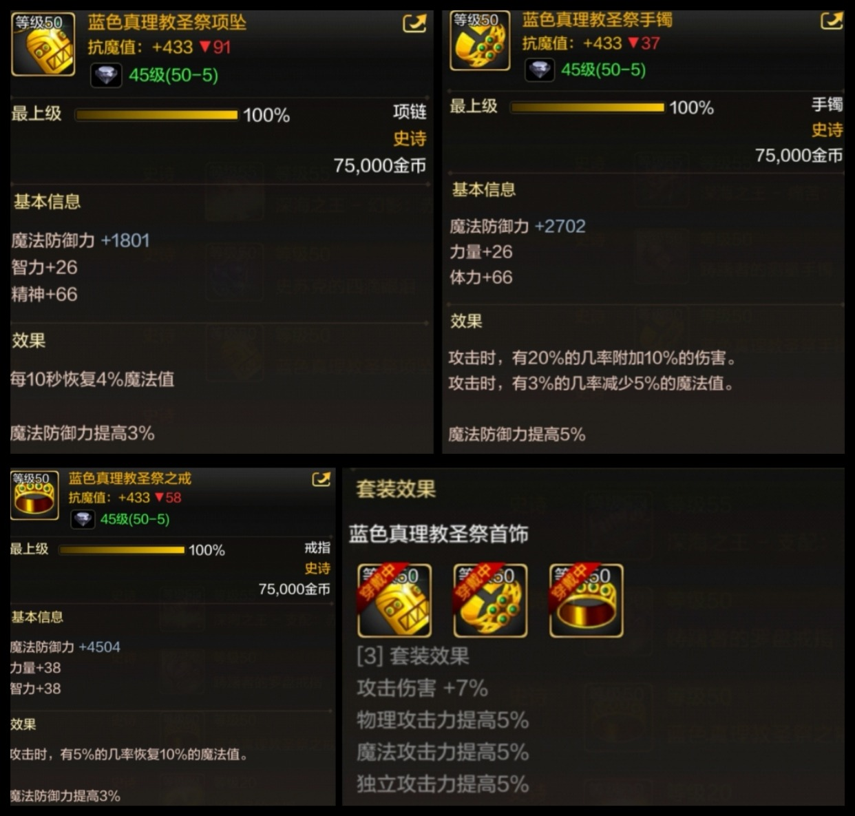 首饰建议搭配蓝色真理教首饰套装