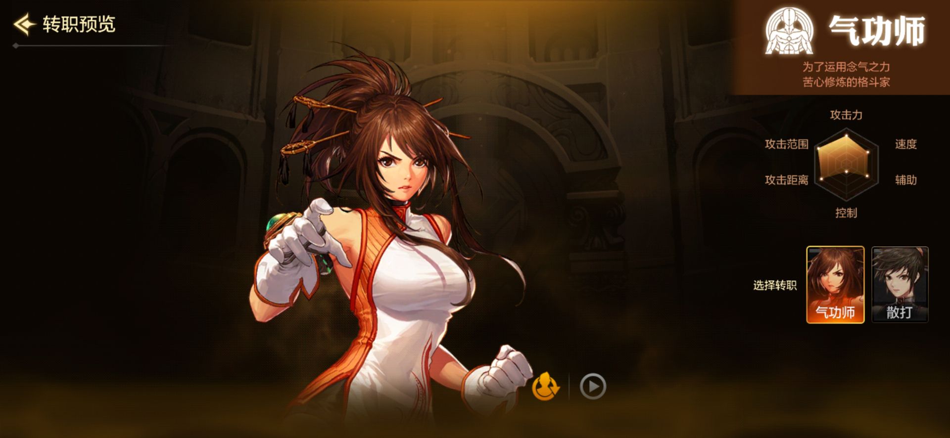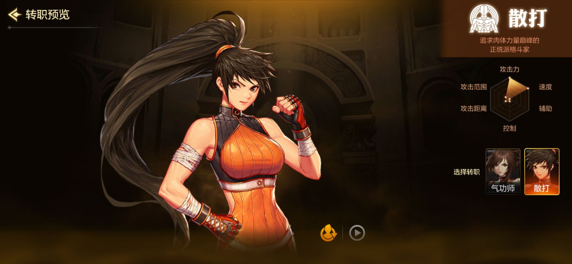 俗称一姐,从称呼上我们就可以看得出这是一个非常非常不好惹的职业!是一个能动手绝不动口的职业散打无论是攻击爆发,还是速度!都是属于超一流!更有秒天秒地秒空气的断子绝孙脚“武神强踢”,由于散打的技能都是贴身近战,所以对于新手来说难免会有点考验!!但是成长起来的散打绝对会让对手跪下唱“征服”!!新手慎入!